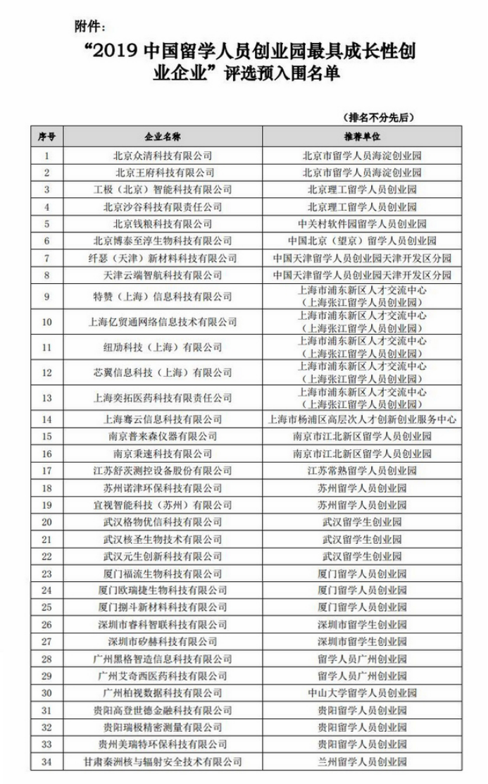 为更好弘扬创新精神,自2010年起,在科技部(国家外国专家局)、教育部、人力资源和社会保障部、致公党中央的共同指导下,中国技术创业协会留学人员创业园联盟发起举办了 “中国留学人员创业园百家企业”评选活动,截至今年已成功举办九届,先后有20多个省市的数千家企业参评,有近500家具有高成长性和发展潜力的留学人员企业入选。经统计,有超过40家入选企业目前成功上市或挂牌,具有良好的示范作用。本届评选活动,全国共有34家企业最终入选,博泰至淳凭借独特优势从众多申报企业中脱颖而出,荣获奖项。