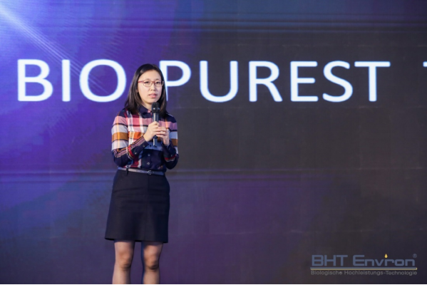 博泰至淳总经理郑淑文女士在新产品发布会上向大家详细介绍了拜尔稀(BioC-1M)碳源和NFSSS纳米絮凝剂两种新品。