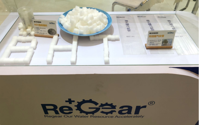 拜微曝气软管和NDI海绵填料首次在环博会上公开亮相,由子公司佳润洁负责生产销售。拜微曝气软管依托德国进口原材料深度改性加工,具有氧利用率高、不易污堵、物化性能强、使用寿命长(通常可使用10年以上)等特点;NDI海绵填料具有孔隙率高、比表面积大、挂膜速度快、物化性能强、使用寿命长等特点,适用于MBBR工艺。